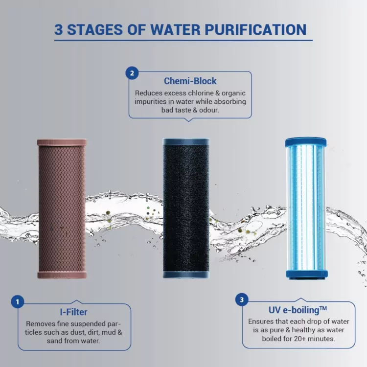 - UV E-Boiling Technnology- Ensures that each drop of water is as pure and healthy as water boiled for over 20 minutes