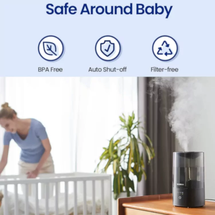 - CUSTOMIZE YOUR MIST: You can adjust the mist output volume to the ideal humidity level for comfort with one-touch control. The 360°nozzle can be adjusted to spray the mist in the direction you desire.
